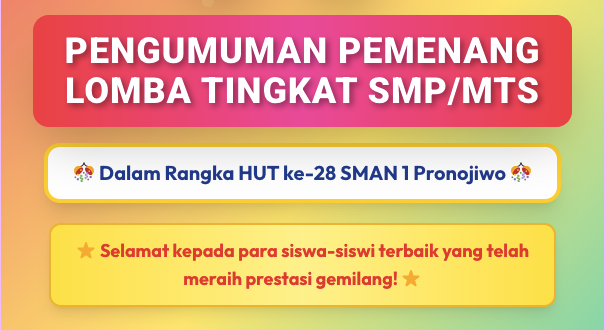 SMAN 1 PRONOJIWO 28 TAHUN 🎉 ★ PENGUMUMAN PEMENANG LOMBA TINGKAT SMP/MTs 🎊 Dalam Rangka HUT ke-28 SMAN 1 Pronojiwo 🎊 ⭐ ...