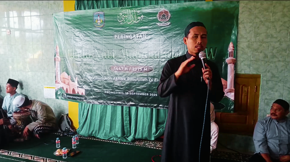 Pronojiwo – Rabu, 10 September 2025, keluarga besar SMA Negeri 1 Pronojiwo menggelar peringatan Maulid Nabi Muhammad SAW 1447 H dengan penuh khidmat. Acara dilaksanakan setelah salat Dhuhur di aula sekolah dengan menghadirkan penceramah, Ustadz Dumyati, yang menyampaikan pesan mendalam agar seluruh umat Islam semakin menumbuhkan kecintaan kepada Rasulullah. “Cintailah Nabi, karena Nabi sangat mencintai […]